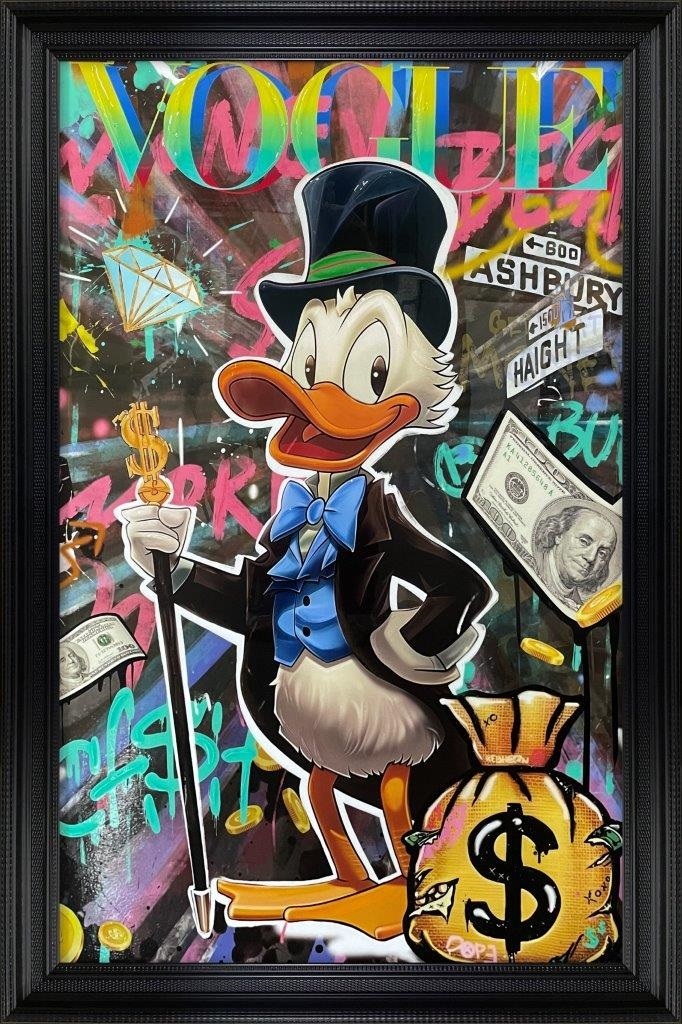 Prachtig groot schilderij met een afbeelding van Dagobert Duck. Past in elk interieur, zowel stijlvol als modern.